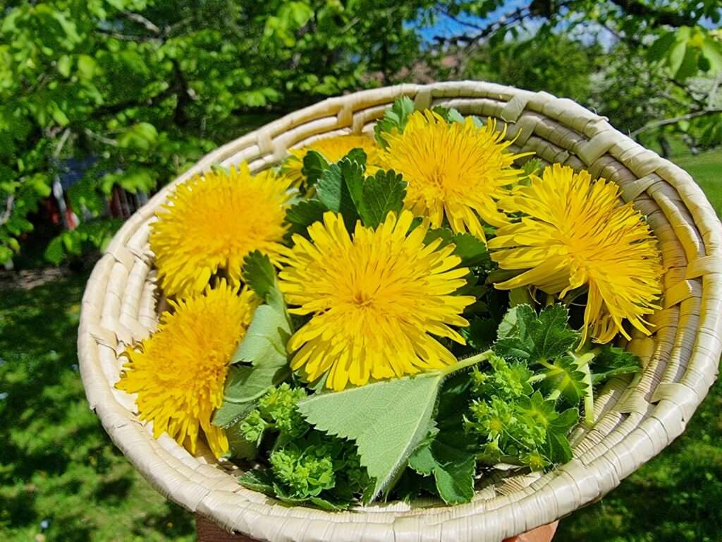 Spring is one of my favorite times in the middle of Sweden where I live. The yellow blooms have recently become one of my favorite weed since I learned how nutritious they are. It may sound strange to have a favorite, but dandelion has so many virtues that it is an easy choice. Dandelion is a generous plant in that every part of it can be used as food or medicine. Blowing on a dandelion ”seed puff” offers both children and adults cheap entertainment – and, some say, a free wish!