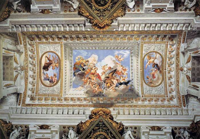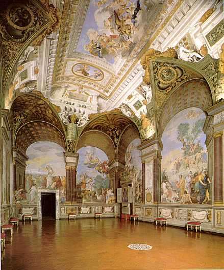 Giovanni da San Giovanni was commissioned in 1635 to decorate this room commonly named after him The stucco ornaments are actually painted, but evoke a sense of opulence and wealth.