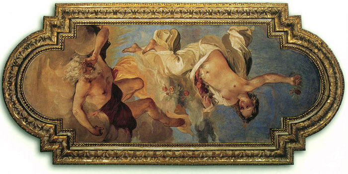 The picture shows the ceiling fresco in the Room of Giovanni da San Giovanni. In 1637, Ferdinando II de’ Medici, Grand Duke of Tuscany, married Vittoria della Rovere, last heir of the Dukes of Urbino, whose extraordinary dowry of art objects enormously enriched the already conspicuous outstanding Medici collections.